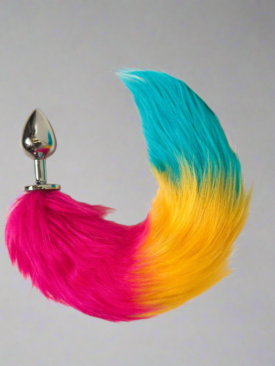 Celebrate pride with every sway! This pansexual flag tail plug is handmade with love and crafted for playful expression. Featuring a sleek aluminum alloy plug and a vibrant acrylic tail in pink, yellow, and blue—it’s 20 inches of pure pan pride from tip to tail (which is stuffed). Flaunt who you are and play with pride!