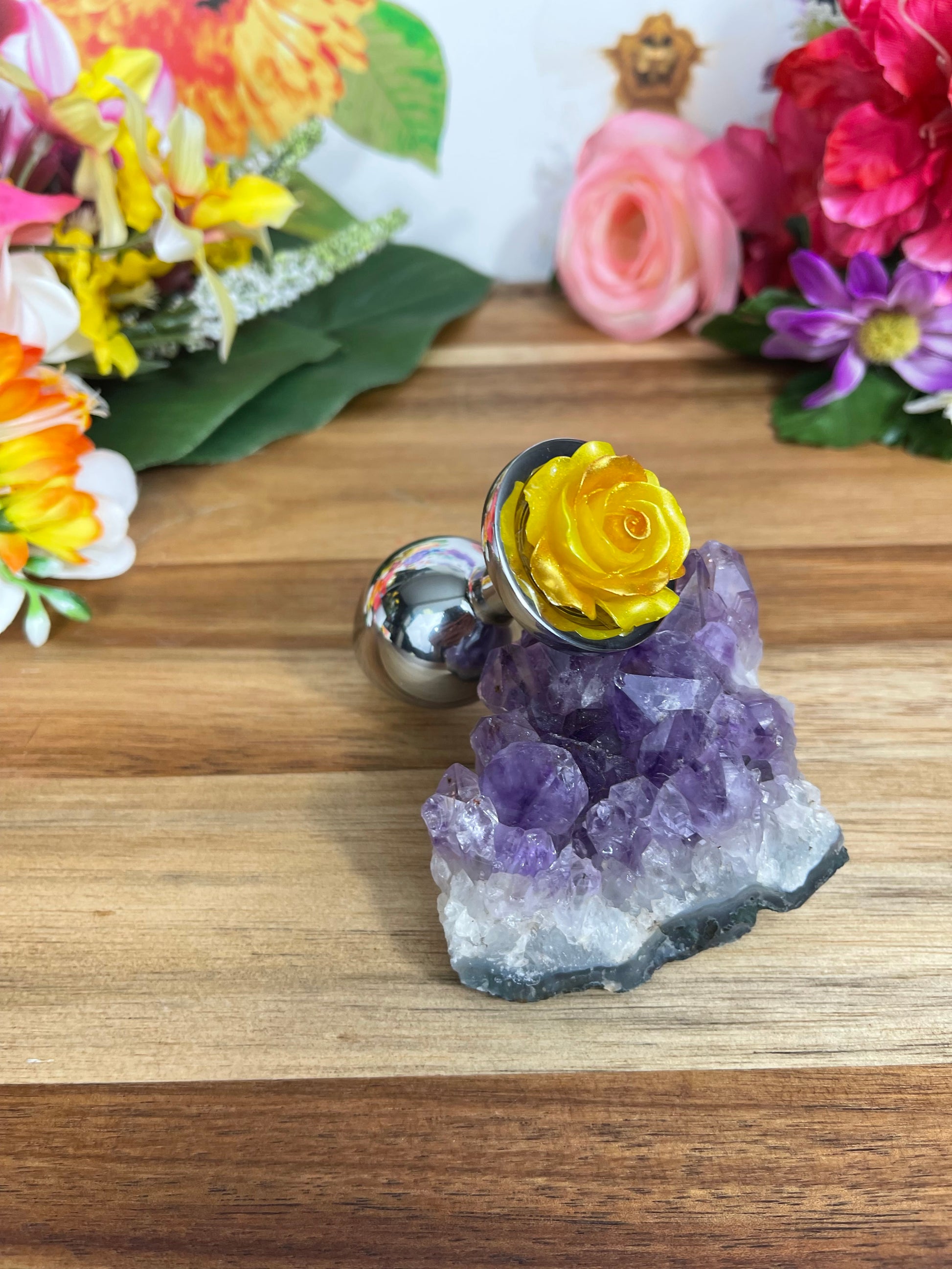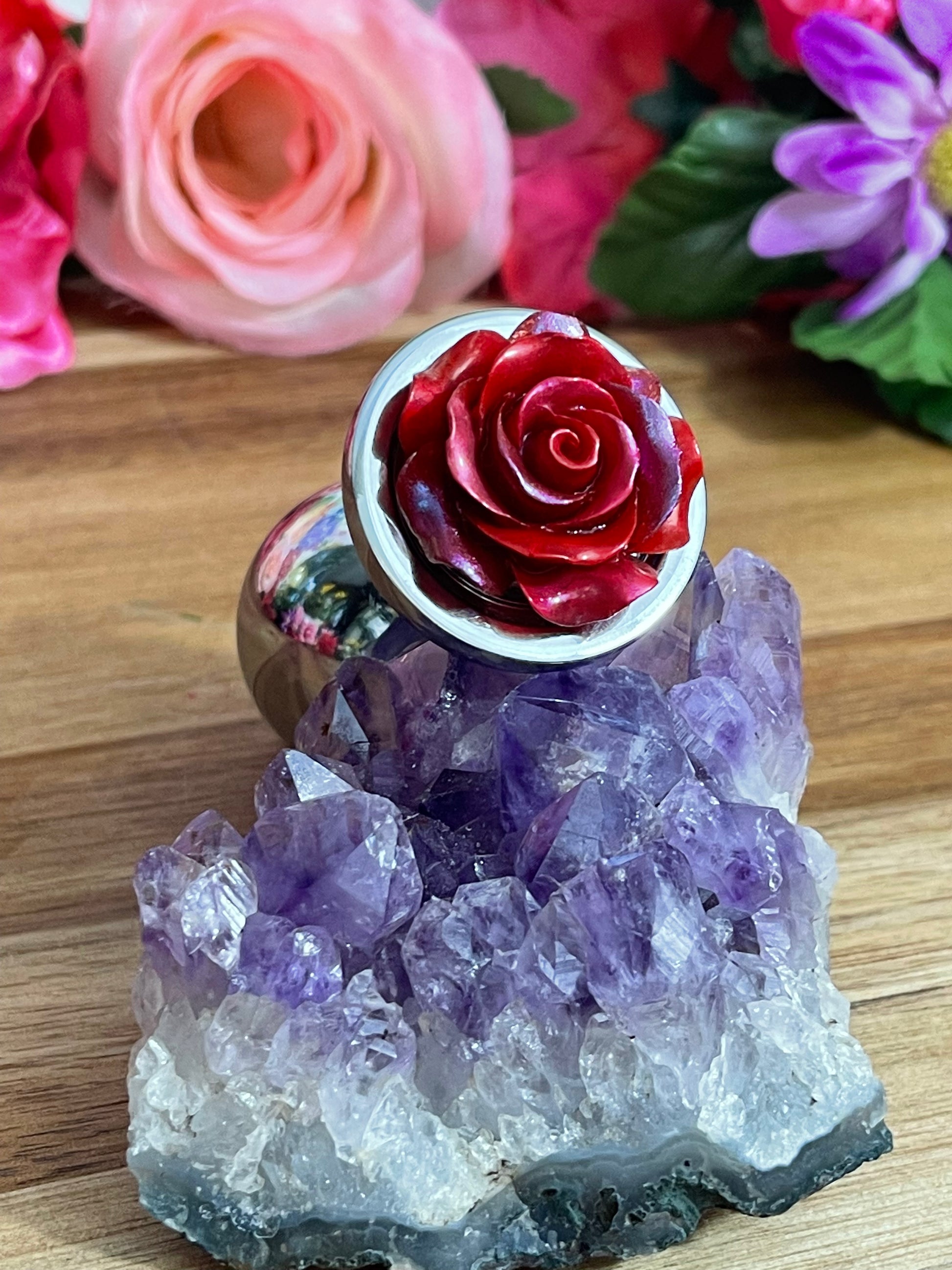 This elegant stainless steel butt plug adds a touch of romance to your collection with a beautiful, hand-painted resin rose adorning the base. Crafted for both comfort and style, its smooth, polished surface offers a perfect blend of functionality and flair. The delicate rose detail provides a whimsical, artistic twist to this intimate accessory, making it a perfect gift for anyone who appreciates a blend of beauty and pleasure. Ideal for beginners or seasoned users alike, the Rosebud Plug ensures that, no matter the occasion, you can always stop and smell the roses.